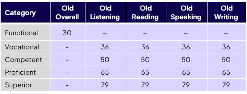 下表显示了每个分数的旧和新分数要求。