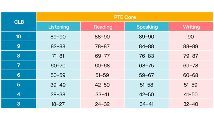 下表展示了PTE分数如何与CLB水平对齐,帮助您了解实现加拿大移民目标所需的分数。下载PDF版本(49.3kb)。